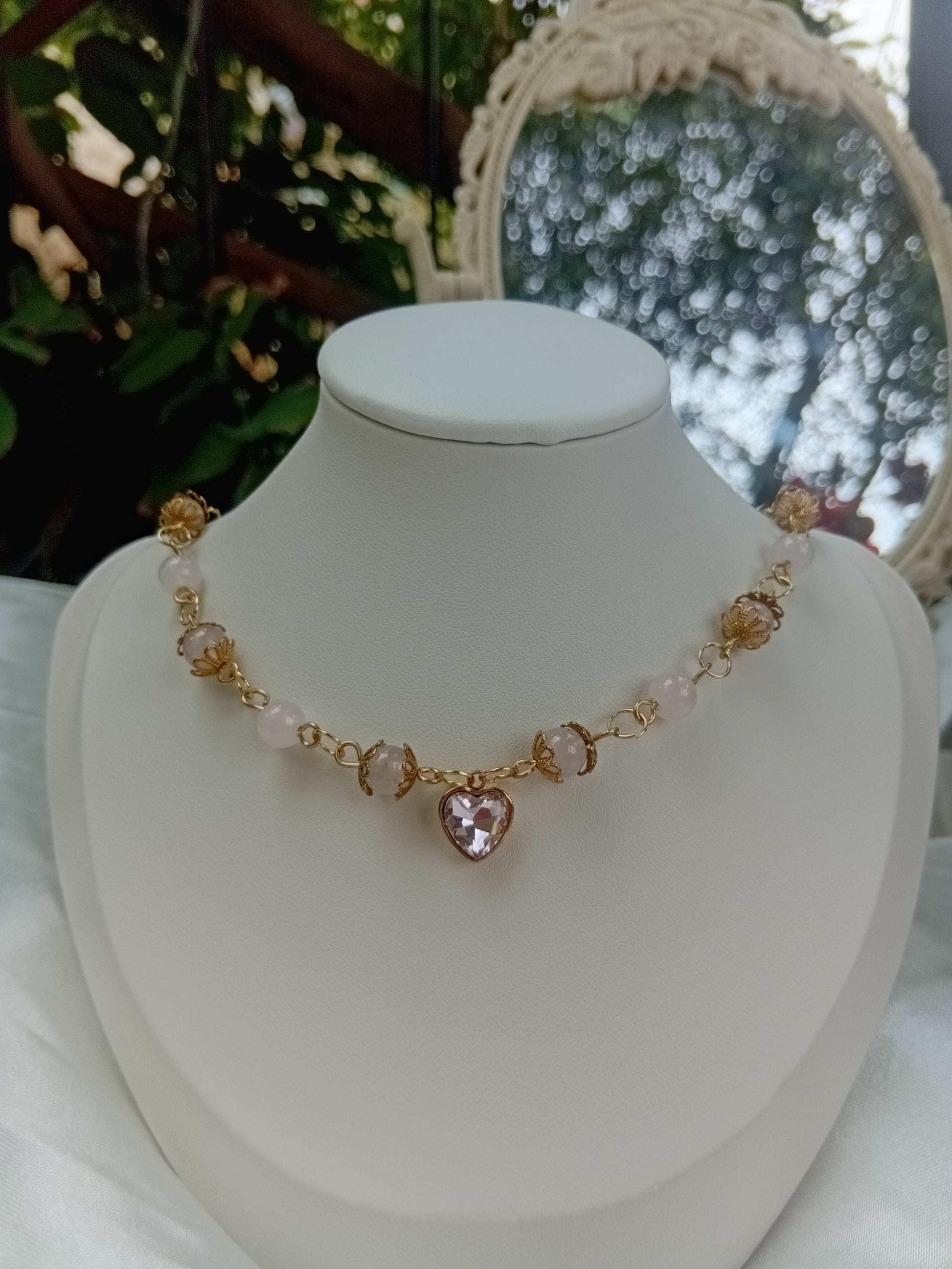 Simple yet elegand handmade rose quartz with plated stainless steel necklace.